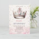 Este primeiro convite de aniversário com a princesa coroa e confetti.