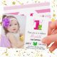 Sapo primeiro aniversario, foto da princesa, convite com listras cor-de-rosa! Convites de aniversário exclusivos e originais personalizem o seu agora! Esta modelo não só tem espaço para uma mensagem, nome de criança, monograma da família, data, local, hora e R.S.V.P., como também pode adicionar uma foto da sua menina! Bonita, simples, elegante e na moda em um só!