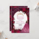 Uma elegante e moderna reviravolta para a Quinceañera tradicional com uma rosa de coroa tiara de ouro reluzente, e um vestido de princesa de ameixa arrojada onde você pode mudar a pele e a cor do cabelo (basta ir à ferramenta design e escolher a pele e a camada de cabelo e escolher sua cor). Apresentando um bonito buquê floral e botânico com rosa dourado confetti e uma forma moderna de arco brilhante, com uma elegante tipografia Quinceañera aniversário com princesa pintada à mão vestida de cor violeta roxa vermelha com brilho. Adicione a sua foto atrás, perfeita festa de aniversário de Mis Quince com uma rosa-princesa de ouro tiara.