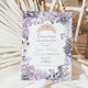 Faça sua princesa se sentir como realeza em sua Quinceañera com nossa Lavanda Floral Watercolor Tiara Invitation. Apresentando lavanda pastel e cor de água floral azul empoeirada com flores bonito e bonitas, folhas e estrutura floral, borda com confete de ouro e coroa de princesa tiara.