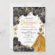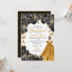 Convite de Aniversário para Quinceanera Floral Dourada e Negra Elegante