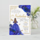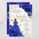 Convite de aniversário de Quinceanera Floral Dourada Real Azul