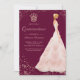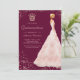 Convide seus convidados com este convite bonito de Quinceañera que caracteriza uma menina bonito que veste um vestido cor-de-rosa com tipografia moderna. Adicione simplesmente seus detalhes do evento neste modelo fácil de usar para fazer-lhe um convite um--um-amável. Lance o cartão sobre para revelar uma textura cor-de-rosa do brilho do ouro do falso na parte de trás do cartão.