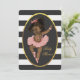 Convites personalizados para chás de fraldas étnicos de bailarina para meninas. Um belo e moderno convite com o fundo das listras brancas e pretas contemporâneas e elegante forma oval de folha de ouro preta e suja com uma adorável e adorável bailarina de dança princesa bebê em um tutu e calçados balés. Fonte cursiva ouro rico. Clássico, chico, feminino, giro, ornamentado, convites duplos para chás de fraldas celebrarem a mãe ser. Todo o texto é totalmente personalizável / personalizável para atender às suas necessidades - muitas fontes e cores para escolher. Esses convites personalizados sofisticados, exclusivos e originais são impressos em ambos os lados/têm impressão frente e verso duplo. Se precisar de assistência para personalizar seu produto, entre em contato comigo através da minha loja e eu ficarei feliz em ajudar.