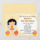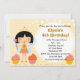 O convite de aniversário feericamente da princesa do divertimento com uma menina vestida em cor-de-rosa e laranja com asas, uma tiara e uma varinha mágica, e três cupcakes com polvilha. Completamente customizável.