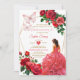 Dourado e Red Dress Princesa Floral Quinceañera Convite Mis Quince 15 Anos, 16º Aniversário,