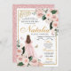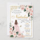 Convite de Aniversário para Quinceanera Floral Dourada, Rosa-Esbranquiçada