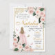 Convite de Aniversário para Quinceanera Floral Dourada, Rosa-Esbranquiçada