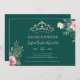 Moderno e elegante 15 de aniversário Quinceanera convite de festas com uma moda de tendências totalmente editável, buquês de canto rosas cor-de-rosa pincelado e diamantes de safra tiara.