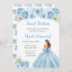Este doce 16 convite apresenta uma bela princesa num vestido de bola azul com arranjos florais. Isto é perfeito para uma doce festa de aniversário de dezesseis.