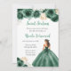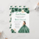 Este doce 16 convite apresenta uma bela princesa num vestido de bola verde-escura com arranjos florais. Isto é perfeito para uma doce festa de aniversário de dezesseis.