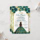 Convites Princesa Floral Verde Arco Dourado Quinceanera
