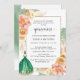 Aprecie seus convidados com este belo convite da quinceañera com delicadas manchas verdes de aquarelas, belos elementos florais e belos detalhes com quinceañera em vestido verde escuro. O mesmo convite também está disponível em espanhol. Convite elegante com elementos caligráficos modernos escritos à mão e quadro floral em cor-de-rosa pincel, pêssego e creme, tons de champanhe. Capacidade de adicionar detalhes de cerimônia e recepção. Recém-cheia com manchas de aquarelas verdes e suaves e em quinceañera no centro com estrelas com brilho. Convite disponível também em verde claro e em verde seno.