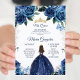 Dourada e Marinho Menina Mexicana Princesa Quinceanera Convite Mis Quince Anos, 15 Aniversário,