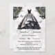 Um belo e falho fundo prateado arma belos rosas pretos e um vestido de baile de conto de fadas com ruffles e um corpo apertado. Duas borboletas prateadas são vistas um de cada lado do vestido. Abaixo do gráfico estão o script de caligrafia em preto e modelos de texto do tipo romano para sua redação personalizada. Se sua filha está celebrando seu aniversário de 15 quinceañera ou se você está hospedando uma chá de panela para ser noiva, esse convite é ideal. Mete a tua filha na ocasião especial dela com este convite luxuoso.