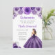 Este convite da Quinceanera apresenta uma bela princesa num vestido de bola roxa escura com arranjos florais. Isto é perfeito para uma festa de aniversário de Quinceanera.