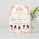 Anuncie a comemoração real da sua princesa com este encantador convite à Princesa Aniversário! Adornada com uma coroa rosa e dourada, flores delicadas e pequenas princesas adoráveis todas com pele escura em vestidos pastéis. Este convite é a introdução perfeita para um dia cheio de magia e alegria. :) Personalize facilmente os detalhes. Perfeito para qualquer aniversário de uma garotinha. - Kate Eden Art