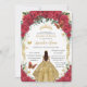 Convites Princesa Quinceañera Rosas vermelhas Vestido Doura