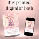 Celebre o segundo aniversário da sua princesa com este encantador convite para castelos cor-de-rosa! Apresentando um elegante número "2" e a doce mensagem, "Nossa Pequena Princesa está Turning DOIS", este convite captura a magia do seu dia especial. Perfeito para uma festa de aniversário de temas reais, este charmoso design dá um tom caprichoso para a família e os amigos. Personalize com detalhes da festa e prepare-se para um dia de alegria e ajustado maravilhoso para uma princesa!