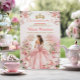 Princesa Rosa Rosa Dress Floral Dourado Mis Quince Convite Quinceañera 15 Anos, 16º aniversário Dourado Glitter