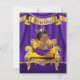Púrpura e princesa dourada convidam uma adorável menina a vestir um tutu roxo bonito e pérolas com coroa roxa e dourada numa bela cadeira roxa e dourada e fundo de cortina. Esses convites bonito para chuveiros roxos e dourados são facilmente personalizados para seu evento simplesmente adicionando seus detalhes no estilo de fonte que você prefere.