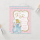 Convite de aniversário da festa da Princesa Chá com princesa bonito azul-faísca em uma bonito damasco rosa e fundo azul. Este bonito convite de festas de chá cor-de-rosa, azul e dourado é facilmente personalizado para o seu evento simplesmente adicionando os seus detalhes no estilo de letra e na cor da sua escolha. Este é um design impresso sem brilho real.