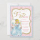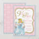 Convite de aniversário da festa da Princesa Chá com princesa bonito azul-faísca em uma bonito damasco rosa e fundo azul. Este bonito convite de festas de chá cor-de-rosa, azul e dourado é facilmente personalizado para o seu evento simplesmente adicionando os seus detalhes no estilo de letra e na cor da sua escolha. Este é um design impresso sem brilho real.