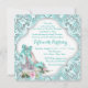 Convite de Quinceanera azul turquesa elegante com sapato de salto alto azul turquesa bonito e tiara de joia de diamante em um belo fundo de redemoinho azul turquesa. Este convite de Quinceanera de princesa de uma vez por todas é facilmente personalizado para o seu evento, simplesmente adicionando seus detalhes no estilo de fonte e cor e redação de sua escolha. Você também pode alterar a cor do fundo.