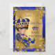 Chá de fraldas Dourado e Royal Blue Boy é um Convite de festas de menino. Design floral de diamante de ouro elegante com um menino e coroa bonitinhos. Chá de Bebê