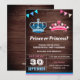 Entusiasmem seus hóspedes com este gênero fofo que revela um convite com uma coroa azul e uma tiara rosa com tipografia moderna contra um fundo de madeira de celeiro. Basta adicionar os detalhes do seu evento neste modelo fácil de usar para torná-lo um convite de tipo único.