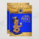 Chá de fraldas étnico afro-americano Príncipe convidado com uma adorável etnia africana bebê príncipe afro-americano vestindo uma bela coroa de ouro e fralda azul real em um belo fundo azul real e joia brilhante. Esses elegantes convites para chuveiros roleais, azuis e dourados príncipe são facilmente personalizados para seu evento simplesmente adicionando seus detalhes no estilo de fonte e na redação de sua escolha. Esta é uma design impressa sem brilho real, joias, folhas, etc.