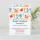Um convite de aniversário de festas de uma escola super fofa, com um padrão colorido no mundo, protratores, bússola, microscópio e muito mais. Excelente para crianças ou adultos.