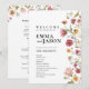 Programa de casamento com aquarela de flores silvestres. Este cartão é caracterizado por flores silvestres com duas fontes modernas e sofisticadas que moldam as tendências dos eventos festivos presentes e futuros.