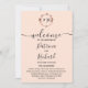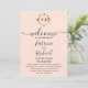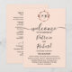 Um simples programa de casamento com monograma em folha de ouro rosa e folhagem chic. Fácil de personalizar com seus detalhes. Programa de casamento moderno boho editável, convite de casamento com foto de guirlandas, personalizável, fonte manuscrita caligrafada, simples, elegante.