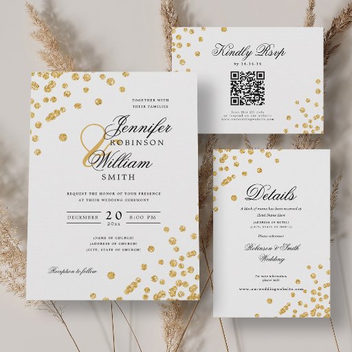 Elegant Script Wedding Gold Glitter Confetti Set Criado por Marta Burton