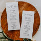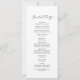 Este delicado programa de casamento impresso ou impresso é perfeito para um casamento moderno. A design romântica minimalista apresenta uma magnífica e elegante tipografia negra num fundo branco com um aspecto simples e limpo. Inclua o nome da noiva e do noivo, a data e o local do casamento, a mensagem do obrigado, a ordem do serviço, a festa noiva e um memorial "em memória amorosa" opcional.