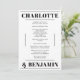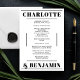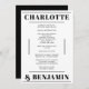 Mande seus convidados para a cerimônia de casamento com este programa de casamento ousado e minimalista. Apresentando um design branco e preto limpo, este programa destaca a tipografia moderna e um layout estruturado para facilitar a leitura. Perfeito para casamentos contemporâneos, este design elegante garante que seus detalhes de eventos sejam exibidos com sofisticação e elegância. Uma escolha ideal para casais que procuram um acessório de cerimônia de na moda e eterno.