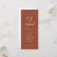 Nosso cartão de casamento laranja queimado é perfeito para sua celebração de casamento minimalista neste outono. Uma bela fonte branca de caligrafia emparelhada com texto simples e limpo fica em um fundo laranja queimado na frente da placa. O verso branco tem texto tonal, criando um olhar elevado para complementar o seu evento na moda. Fácil e rápido de personalizar-se com seus próprios detalhes de casamento.