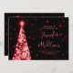 Modelo do programa de Casamento Vermelho Negro Vermelho de Árvore Elegante e Festiva do Natal, com programa de festas e texto de menus, luzes brilhantes da Árvore de Natal e script de tipografia moderna.