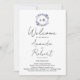 Fácil de personalizar com seus detalhes. Um simples programa de casamento floral roxo e azul de monograma. Programa de casamento moderno, editável, personalizável, letra escrita à mão, simples, elegante.