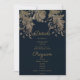 Convite de detalhes do programa de casamento com renda floral brilhante em azul marinho e dourado é perfeito para casais que procuram um toque simples e bonito para o seu grande dia. Esta moldura de flor dourada brilhante envolve os detalhes do seu casamento. Dê aos seus convidados um primeiro vislumbre maravilhoso do seu casamento, este convite será uma adição fantástica para os seus eventos de casamento. Todos os desenhos são impressos.