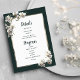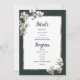 Este lindo design de convite de casamento apresenta um adorável programa de detalhes de casamento floral tropical elegante em aquarela branca, verde escuro e dourado, convites perfeitos para qualquer cerimônia sofisticada e elegante. Este floral tropical elegante é perfeito para o casal luxuoso e sofisticado. Personalize este design com sua mensagem e informações personalizadas. Todos os designs são impressos.