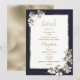 Este lindo design de convite de casamento apresenta um adorável programa de detalhes de casamento floral tropical elegante em aquarela branca, azul naval e dourado, perfeito para qualquer cerimônia sofisticada e elegante. Este floral tropical elegante é perfeito para o casal luxuoso e sofisticado. Personalize este design com sua mensagem e informações personalizadas. Todos os designs são impressos.