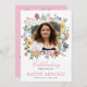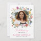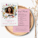 Este belo programa de serviço funerário apresenta um fundo branco clássico, uma foto quadrada de solteiro cercada por flores silvestres, e uma tipografia simples mas elegante. O roteiro na frente diz "Celebração da Vida". A parte de trás tem todos os detalhes do programa.