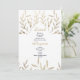 Este maravilhoso design de convite para o casamento apresenta um lindo branco desenhado à mão e convites do Programa de Detalhes do Casamento floral de folhagem de luxo simples de ouro que são perfeitos para qualquer cerimônia elegante e sofisticada. Estas elegantes folhas florais são perfeitas para casais na moda. Personalize este design com sua mensagem e informações personalizadas. Todas as designs são impressas.