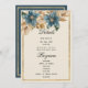 Convite para Casamento do Programa de Detalhes Florais do Jardim de Ouro, Azul, Marfim e marinho de Botânica. Um simples convite botânico às flores da primavera que é perfeito para um casamento no jardim ou no exterior. Todas as designs são impressas.