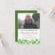 Comemore e comemore a vida da sua amada, com o nosso belo cartão fúnebre irlandês. Delicadamente trabalhado, ele apresenta um fundo branco emblemático enfeitado com capas de shamrock de aquarelas verdes e uma fotografia de precioso. A frente do cartão exibe os detalhes do funeral, enquanto o verso contém a ordem de serviço em um pano de fundo verde. Adicionando um toque pessoal, incluímos uma nota de agradecimento personalizada por seu conforto e conveniência em tempos de tristeza.