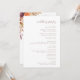 Mande seus convidados através do dia especial com este cartão elegante do programa de casamento floral. Apresentando flores de aquarela macia em tons de queda quente, caligrafia moderna e um layout minimalista limpo, este programa é a combinação perfeita de encanto rústico e estilo de eterno. Personalize com seus nomes, data de casamento e detalhes personalizados da cerimônia para criar uma manutenção que seus convidados gostarão. Perfeito para casamentos outono, cerimônias de celeiro rústicas, celebrações de jardim e eventos românticos.