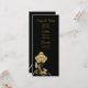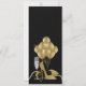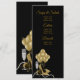 Menu e programa elegante preto e dourado com belos calçados de salto alto, balões e pérolas dourados em um plano de fundo de sua própria cor. O mesmo design está atrás. Esses programas ou menus em preto-e-ouro são facilmente personalizados com o texto de sua escolha na frente e no verso no estilo de fonte que você prefere.
