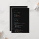 Celebrate love and code with this unique developer, programmer, technology themed wedding invitation! Perfect for programmer couples, this creative design features witty coding references and a fun geeky vibe that will impress your guests. Fully customizable to include your names, date, and venue details, this template is ideal for tech-savvy couples looking to add a personal touch to their big day. Make your wedding unforgettable with this one-of-a-kind invitation for coders and developers!
